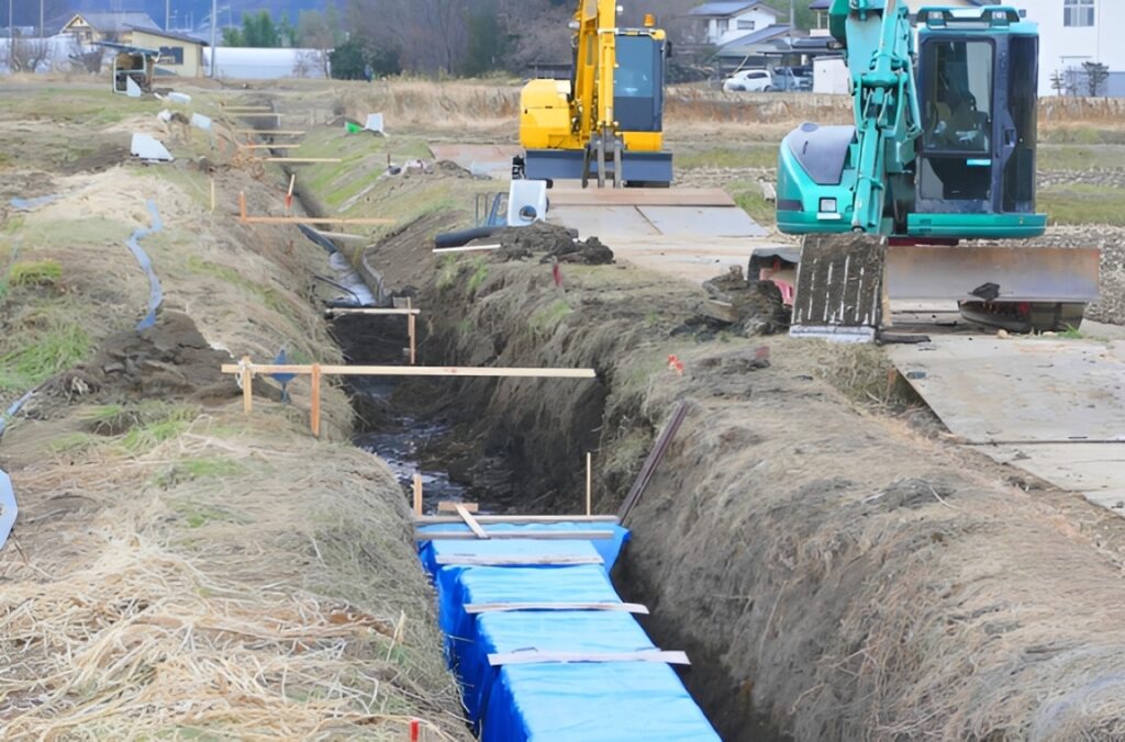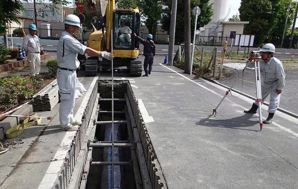 下水道の流れに滞りが生じないよう、勾配の精度を徹底し、緻密な施工管理と厳格な品質管理のもとで工事を行っています。